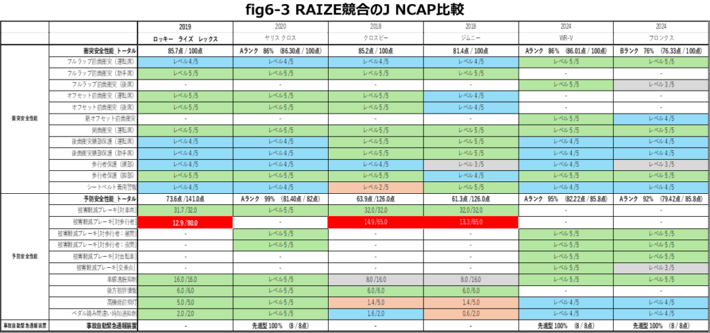 JNCAP評価では被害軽減ブレーキ(歩行者検知性能)に関しては重視される方にはYARIS CROSSの選択も視野に入れて考察してください