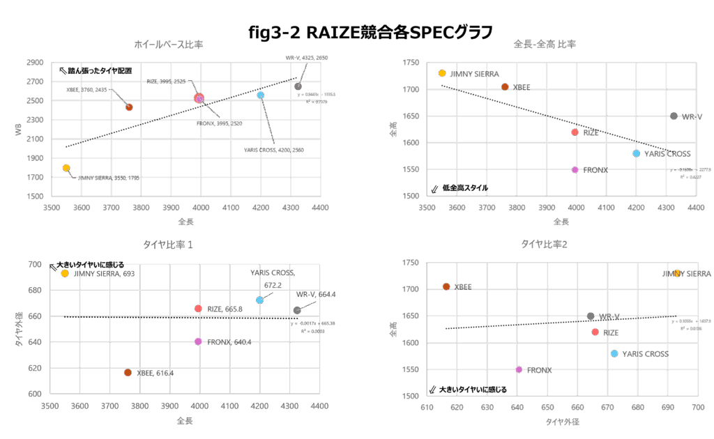 - タイヤ比率やボディ比率からも、視認性と操作性の高さがうかがえる。