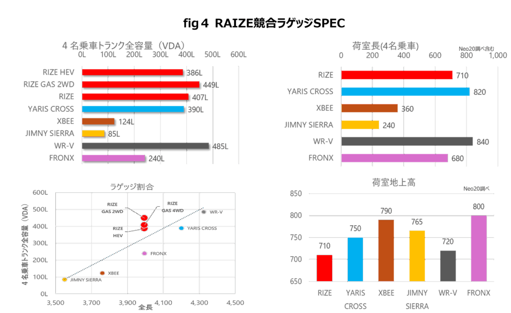 RAIZEはコンパクトSUVでありながら、荷室容量にも妥協がありません。